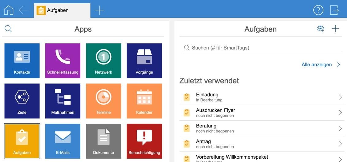 Wenn Sie Aufgaben in CareCM erstellen möchten, können Sie die App Aufgaben () anklicken.