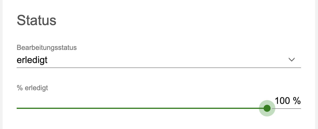 Ob Sie die Aufgabe für sich selbst oder für jemand anderen anlegen, ist gleichermaßen möglich. Zudem können Sie den aktuellen Status festlegen und den Bearbeitungsfortschritt in Prozent angeben.