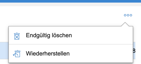 Öffnen Sie das Aktionsmenü und wählen dort „Wiederherstellen“ aus.